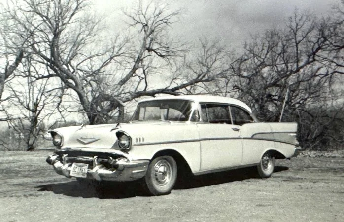 Most cars had bench seats (no seat belts). Three people could sit in the front seat. On my first dates with Karl, that bench seat was an easy way to cozy up and keep warm.