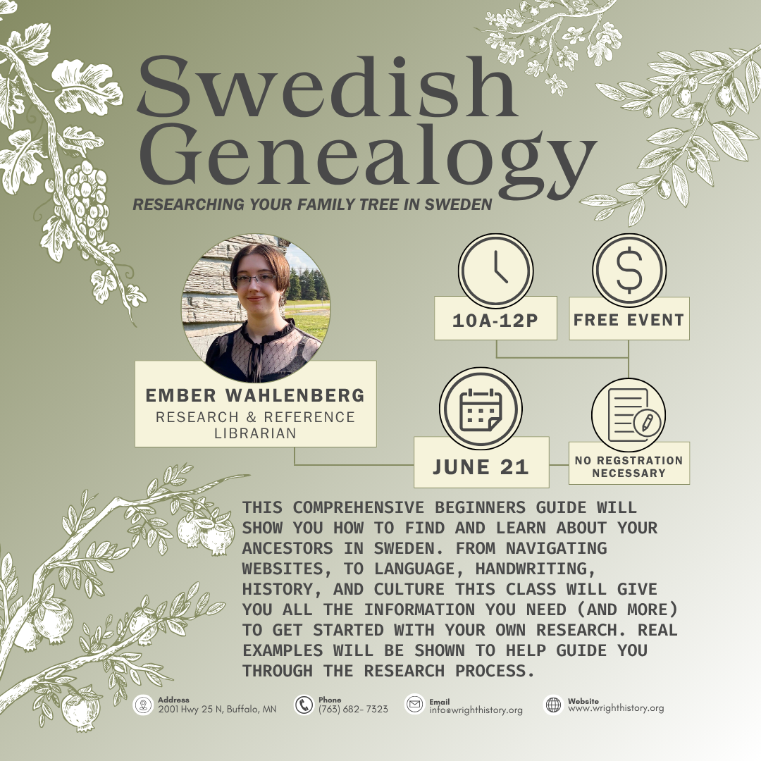 The first class presented by our Research & Reference Librarian Ember, on the basics of genealogy. Topics include research process, resources to use, and what the WCHS library has to offer.